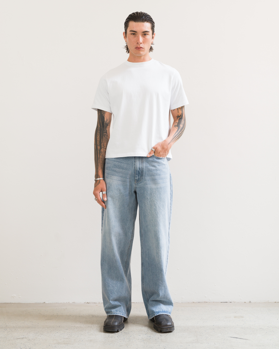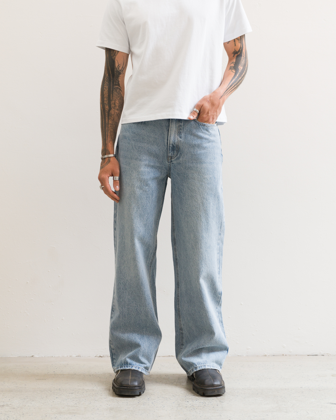 Wide Leg Jeans (Washed Blue)