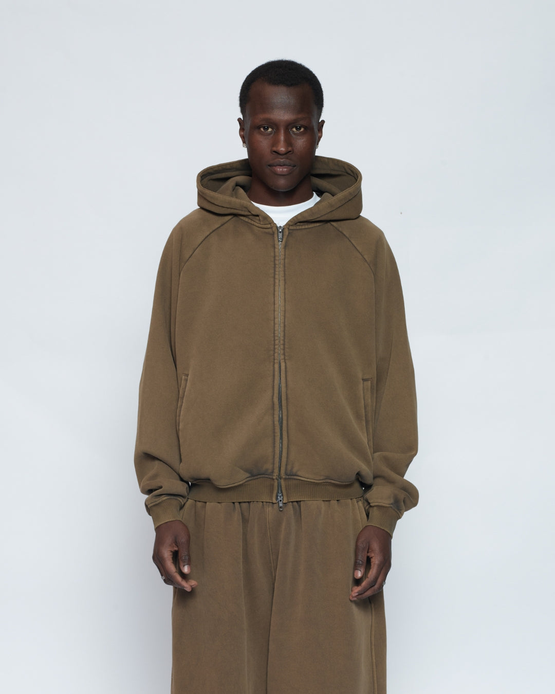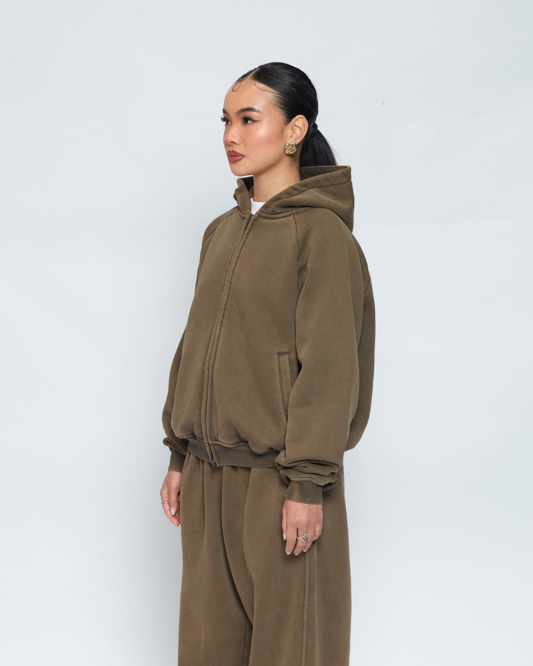 Zip Up Hoodie (Washed Olive)